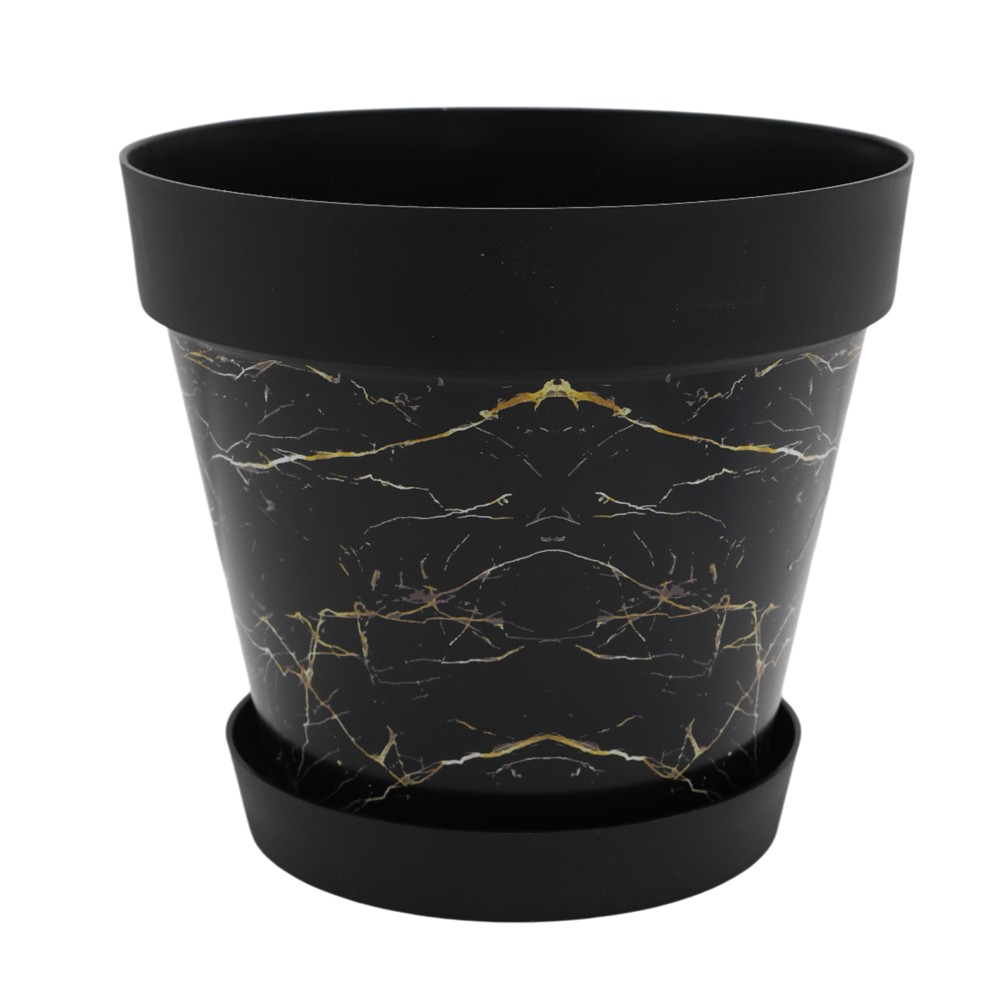 Vazo lulesh, Desenli, plastike, e zezë, Ø18xH16 cm