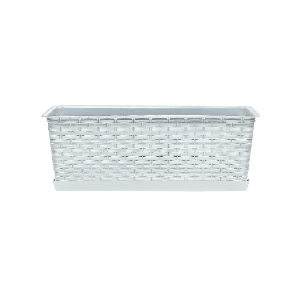 Vazo lulesh, drejtkëndore, Rotolla case P, plastike, e bardhë, pjatë e përfshirë, 39.1x17.3xH15 cm, 6.3 lt