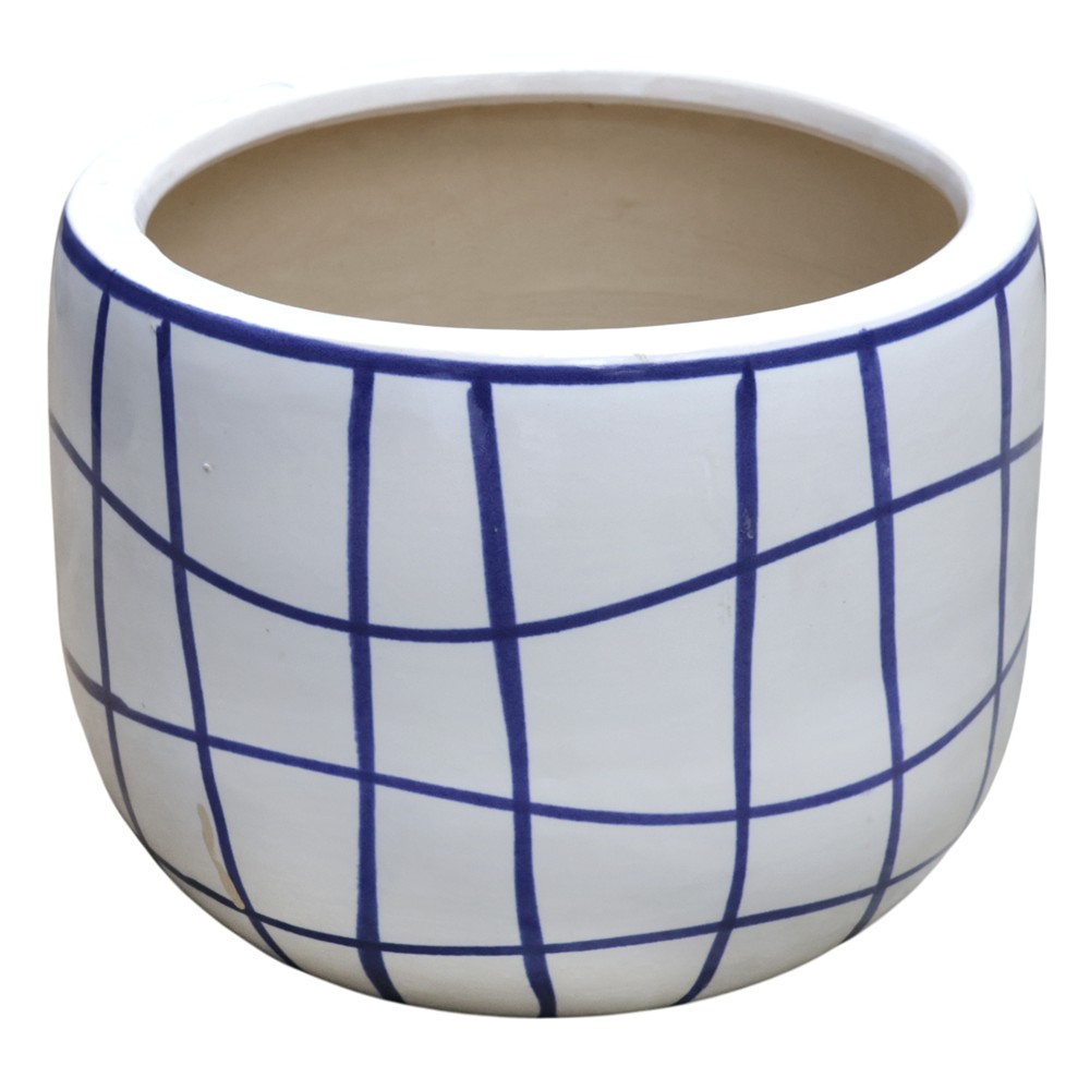 Vazo lulesh, L, qeramike, e bardhë/blu, Ø29xH22 cm