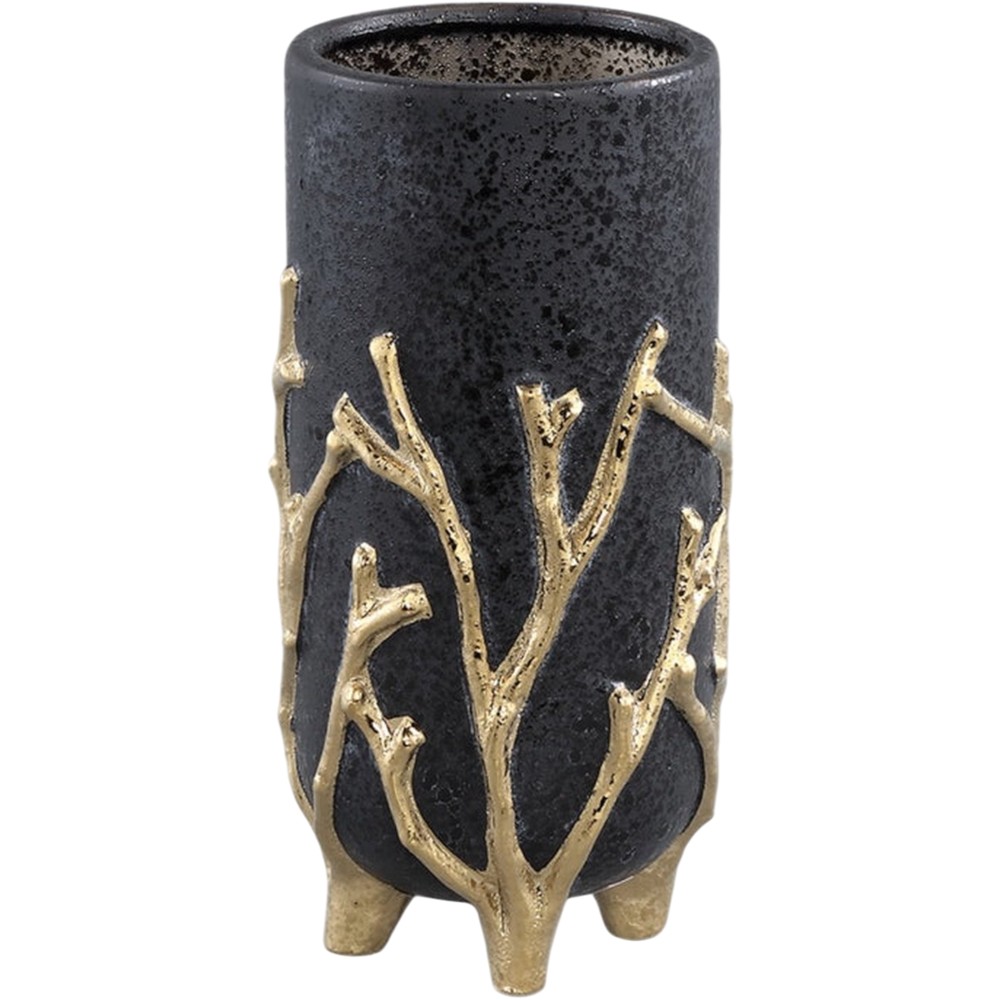 Po vlerësoni:Vazo lulesh, qeramike, e zezë/floriri, 12x12xH24 cm