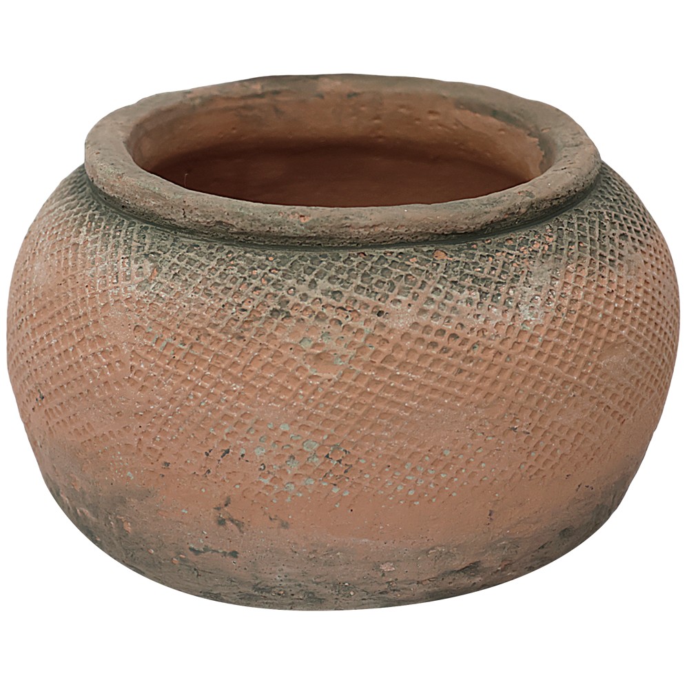 Vazoja e luleve prodhuar nga qeramika në ngjyrë terrakotë është një pjesë artizanale e dizajnuar me kujdes për të shtuar një prekje të veçantë artistike dhe elegante në ambiente të ndryshme shtëpie ose ambientesh të tjera. Me dimensionet e saj të qarta 19x19x13 cm, kjo vazo është e përshtatshme për të vendosur lule natyrale , duke krijuar një atmosferë të bukur dhe të freskët në shtëpinë tuaj. Me një prekje rustike dhe ngjyrën e karakteristike të terrakotës, vazo sjell një ndjesi të ngrohtë dhe të sofistikuar në ambiente.