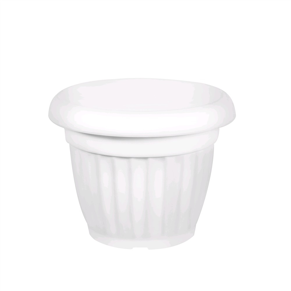 Vazo lulesh rrethore, HOME DESIGN, plastike, e bardhë, Ø16 xH12.5 cm
