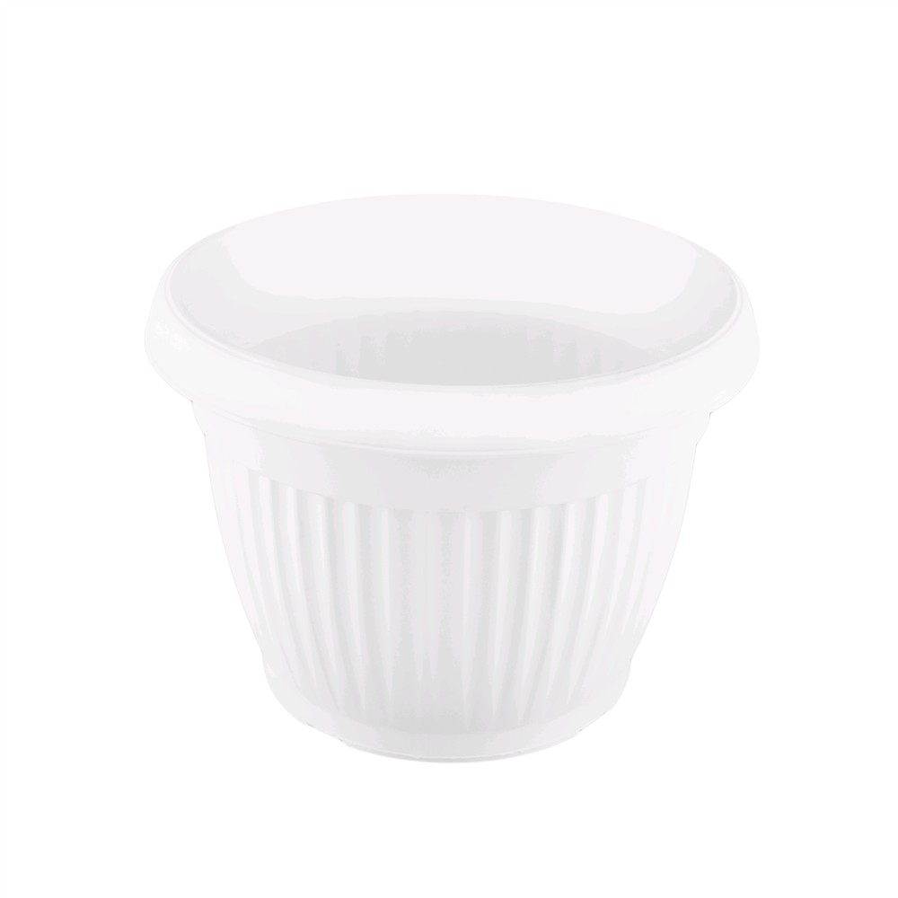 Vazo lulesh rrethore, HOME DESIGN, plastike, e bardhë, Ø19 xH15 cm