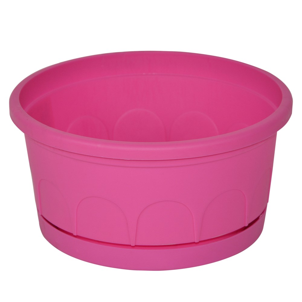 Vazo lulesh rrethore, LEADER, plastike, rozë, Ø30 xH13 cm