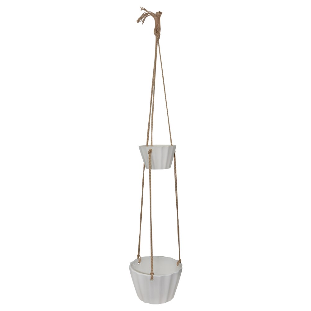 Vazoja e lules me varje me formën e saj rrethore me gdhendje. Linjat impresive e bëjnë këtë vazo një dhuratë të mrekullueshme për të apasionuarit pas kopshtit. Vazoja e lules me varje do të përmirësojë dhe zbukurojë dekorin e kopshtit tuaj. Detajet dhe stili i kësaj vazoje dhuron një vështrim të paarritshëm në projektin tuaj. Seti përbëhet nga: Ø14.5xH9 cm; Ø22 xH13.5 cm
