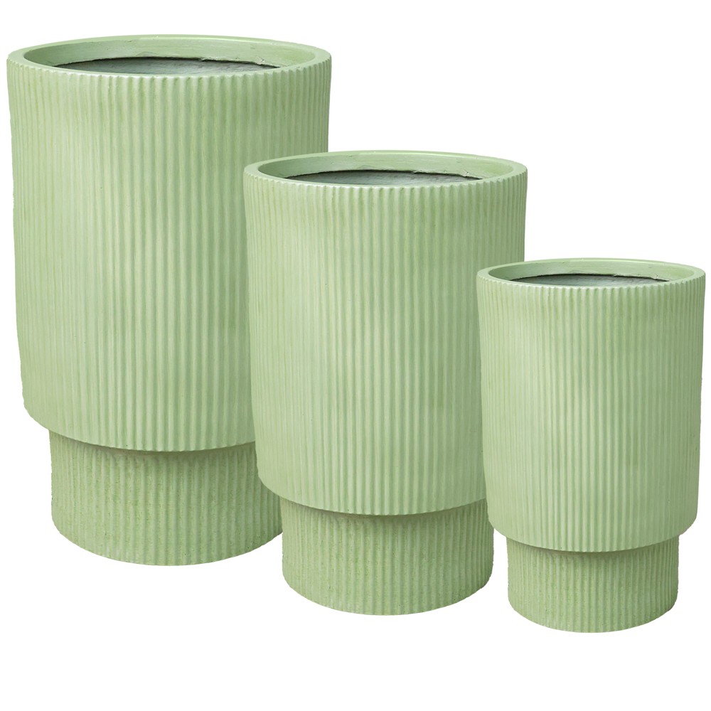 Vazo lulesh, set 3 copë, fibër xhami/argjilë, jeshile, 24x24x36 cm; 30x30x47 cm; 37x37x55 cm