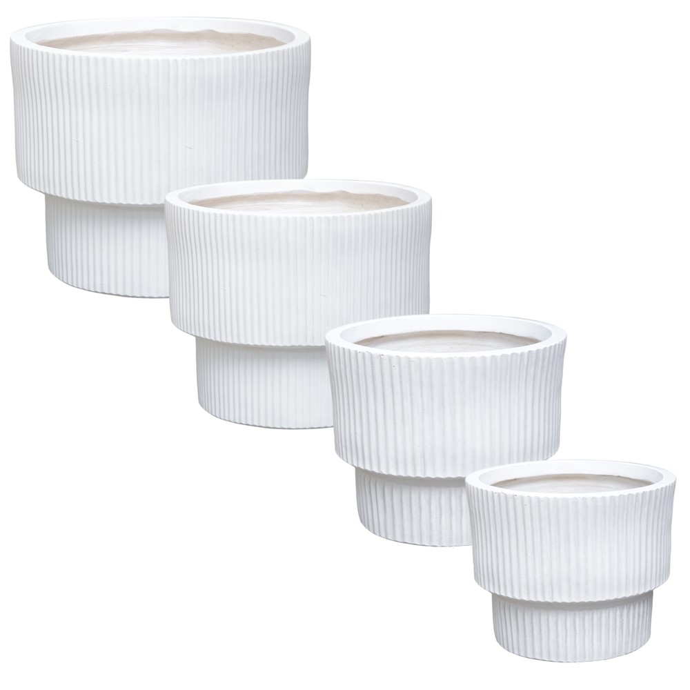 Vazo lulesh, set 4 copë, fibër xhami/argjilë, e bardhë, 24x24x20cm; 30x30x24 cm; 37x37x30 cm; 45x45x37 cm