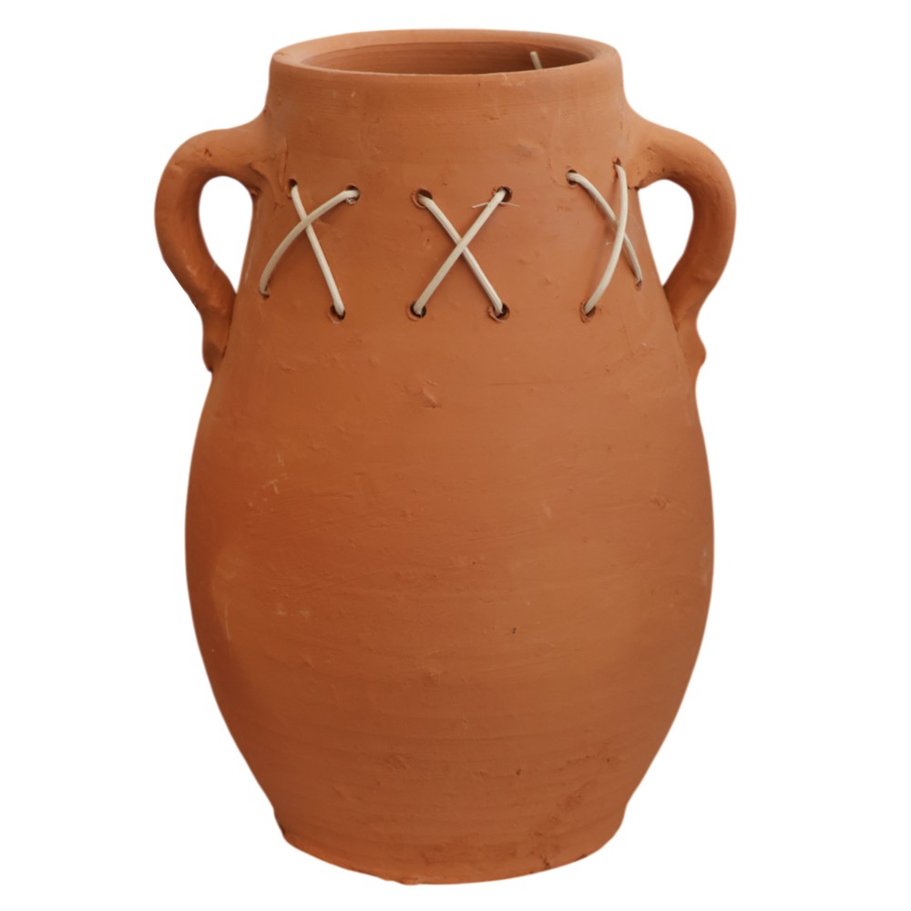 Një vazo lulesh elegante është gjithmonë një domosdoshmëri për ambientet tuaja. E tillë është edhe kjo vazo e cila veçse funksionale do të shërbejë edhe si një element dekorues në arredinet tuaja. Një ndërthurje unike mes materialit të ratanit dhe terracotës.