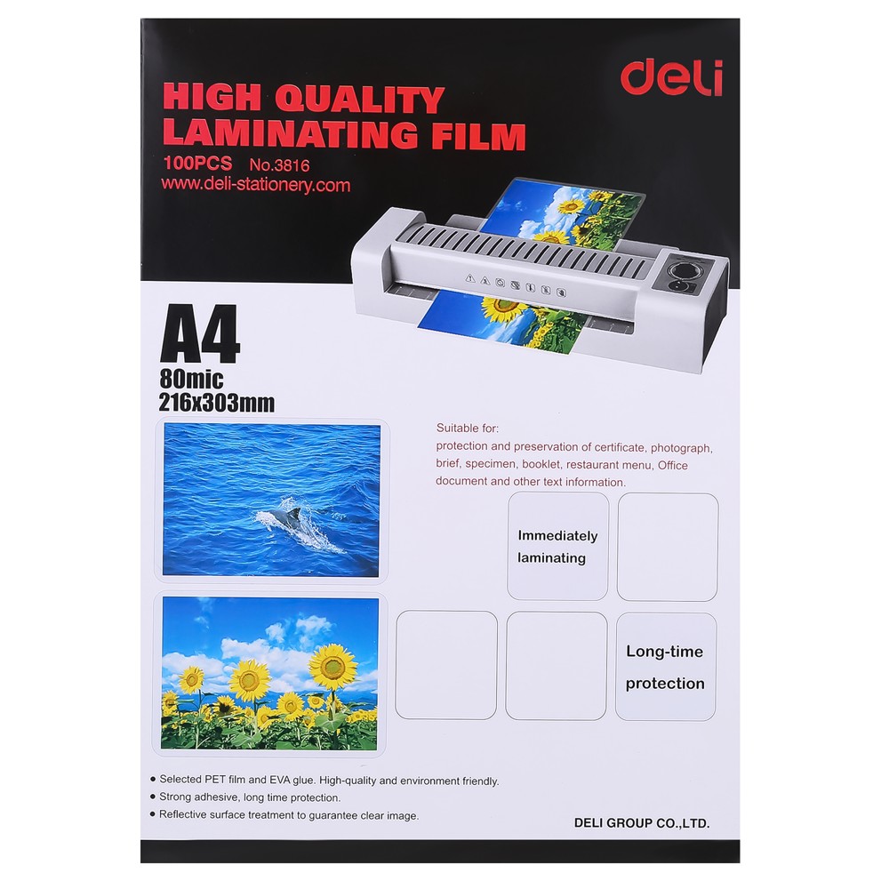 Zarf plastifikimi për dokumente me madhësinë A4 dhe trashësinë 80 mic është një zgjedhje e shkëlqyeshme për të mbrojtur dhe plastifikuar dokumente të rëndësishme. Me dimensionet 216x303 mm, këto zarfe janë të përshtatshme për shumicën e dokumenteve dhe fotove të madhësisë A4.