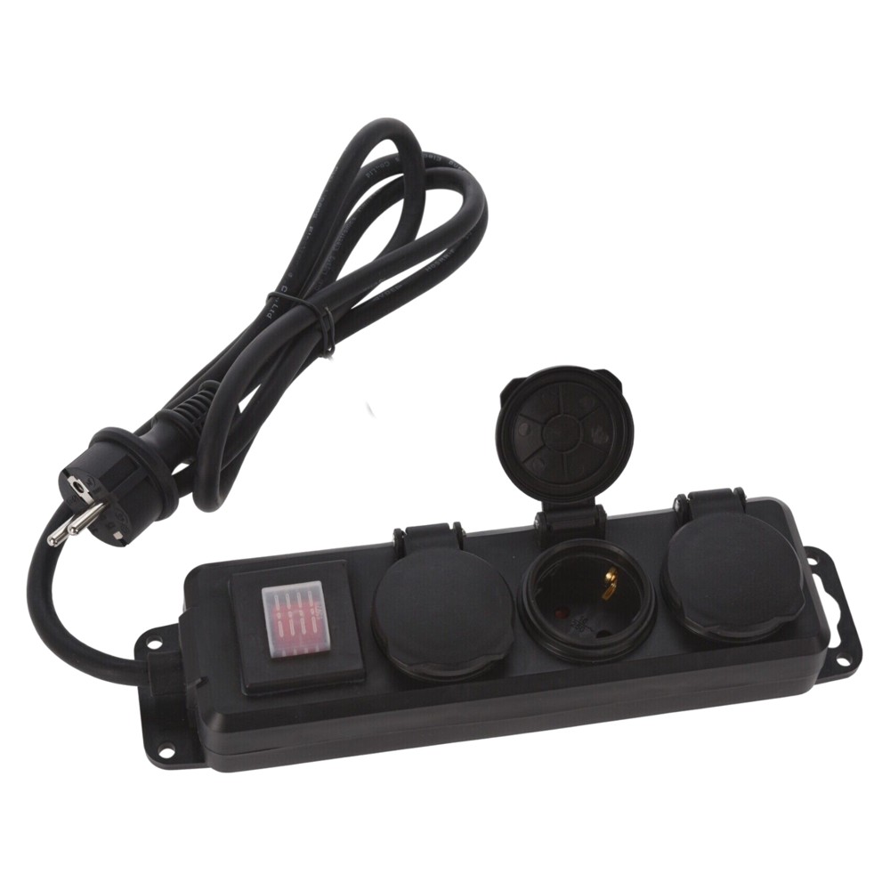 Zgjatues elektrik, 3M, 1.4m, IP48, 3x1.5mm, gome, e zeze, eshte nje zgjedje ideale per tu perdorur ne kopshin e jashtem te shtepise suaj duke mos u shqetesuar per kushtet atmosferike pasi zgjatuesi ka nje shkalle mbrojtje IP68 duke mos depertuar lageshtiren