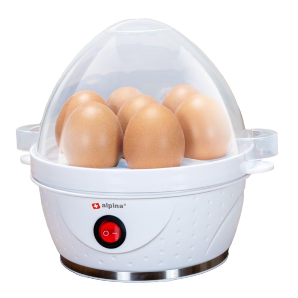 Vezë të shijshme për mëngjes? Me zjerësin e vezeve Alpina ka vend per te gatuar deri ne 7 veze ne te njejten kohe. Përdorimi është shumë i thjeshtë dhe i shpejtë. Nuk duhet të vini më një tigan me ujë në valë, thjesht vendosni sasinë e dëshiruar të vezëve në raftin e vezëve të bojlerit elektrik të vezëve. Përdorni gotën matëse të dhënë për të shtuar sasinë e duhur të ujit të ftohtë, në varësi të faktit nëse i dëshironi vezët të ziera të buta, mesatare apo të forta. Pastaj ndizni butonin. Falë tingullit paralajmërues, ju mund të dëgjoni kur vezët të kenë përfunduar gatimin. Zjerësi i vezëve ka fund që nuk rrëshqet dhe mbrojtje nga mbinxehja. Përveç tenxheres elektrike të vezëve, paketa përmban një shpues vezësh, raft vezësh dhe gotë matëse.
